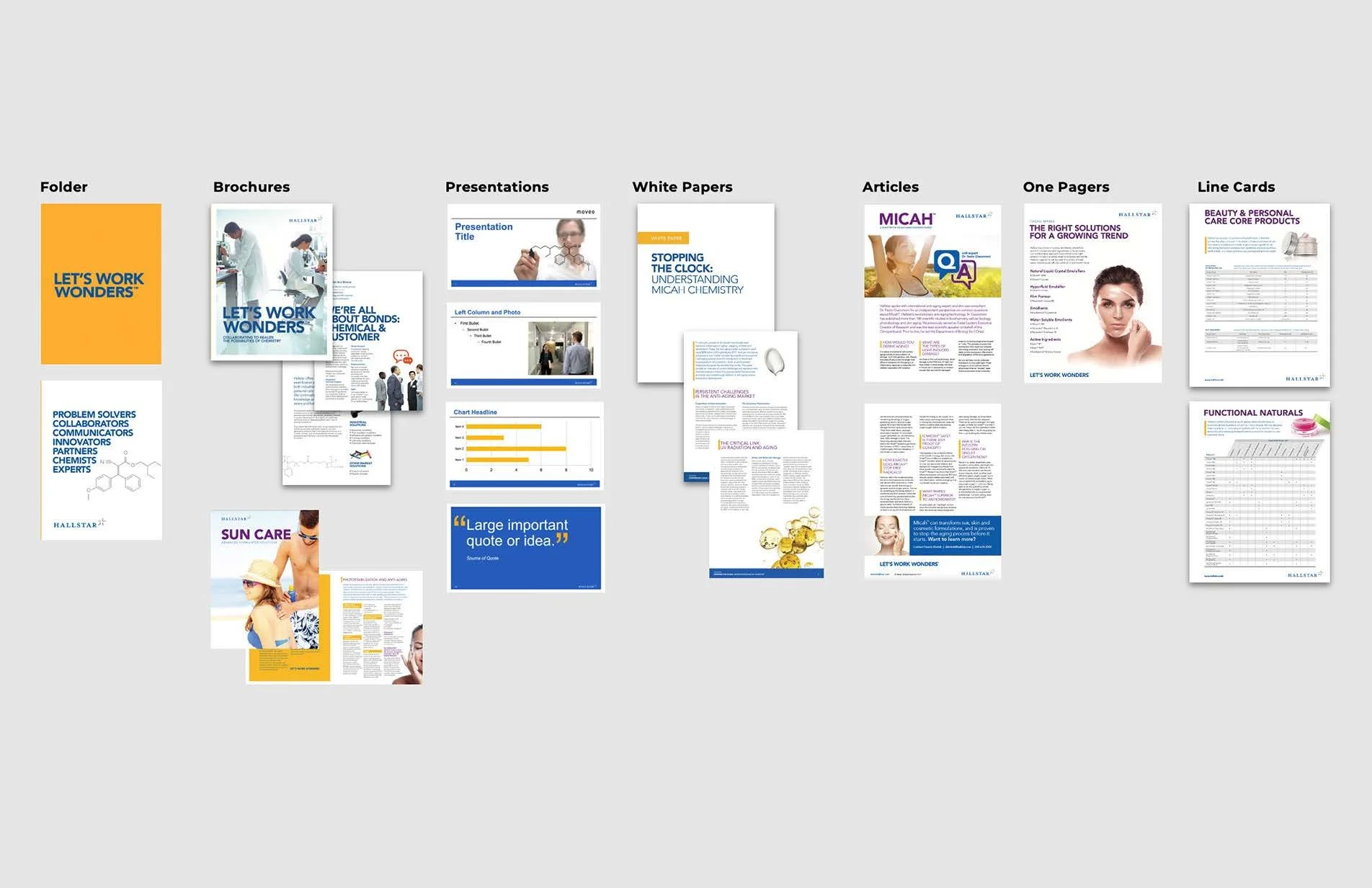 Chemists are like wizards, and the wizards at Hallstar can make almost anything you need. Enter the “Let’s Work Wonders” campaign and brand refresh for this global B2B chemical formulator. The white paper (“Stopping the clock”) shown a few sections below helped them seal the deal with the world’s largest cosmetic company.