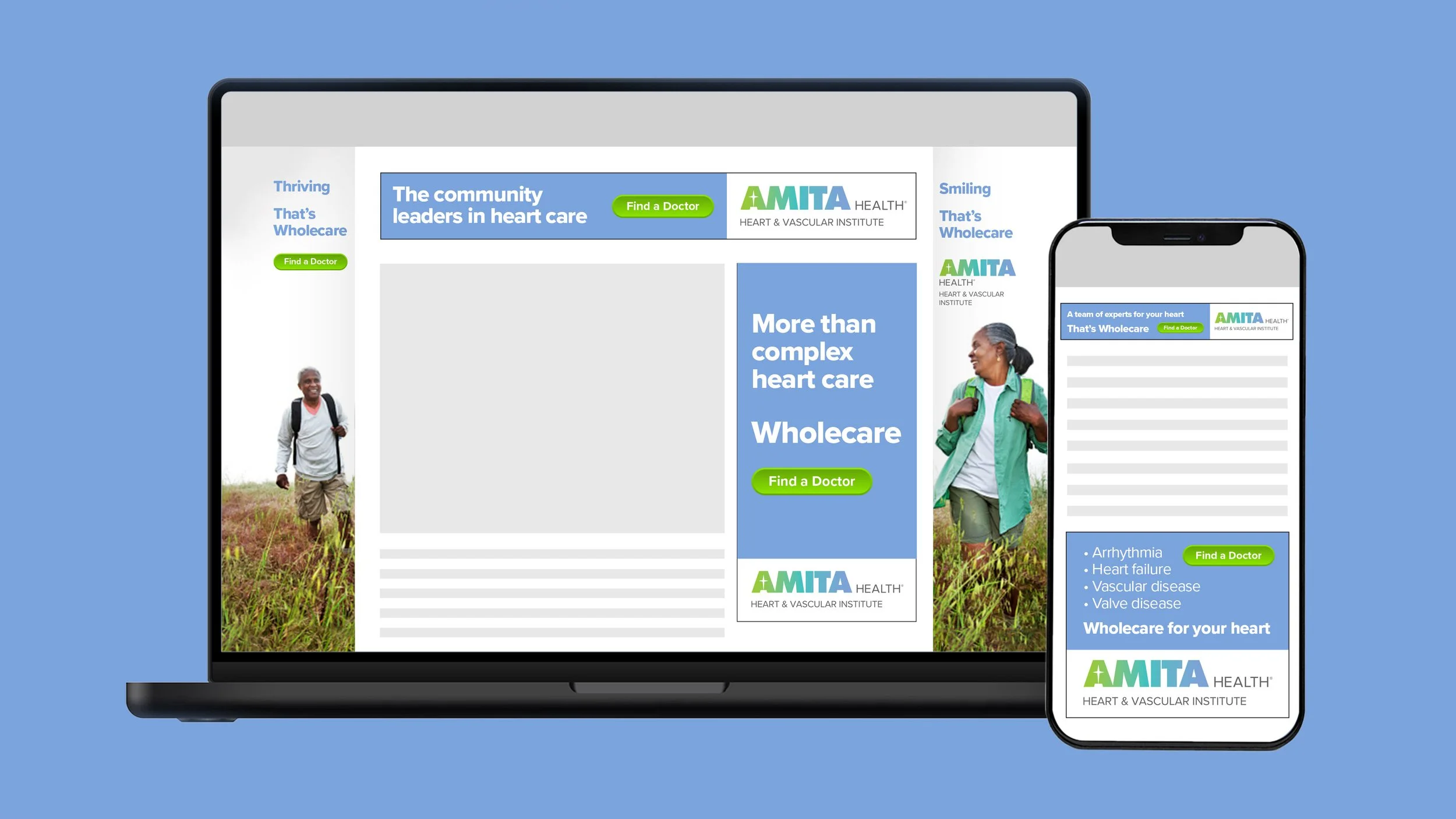 The “Wholecare” concept gave the new AMITA Health brand a warm, campaign-able phrase to express their holistic, patient-first care across 10+ service lines – and compete with local academic medical centers. Doctors loved it! Patients loved it! The Healthcare Advertising Awards loved it!